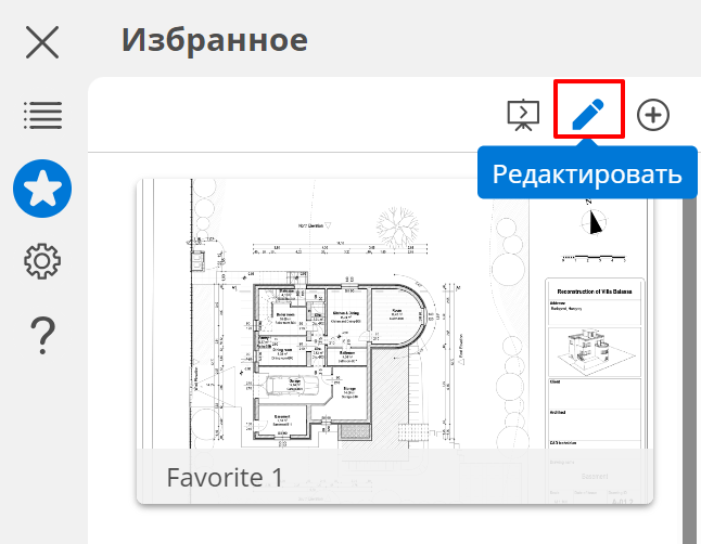- В меню BIMx нажмите кнопку со звездой, чтобы открыть панель Избранного.