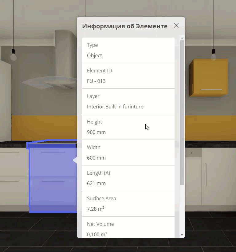 Для моделей Archicad: Отображаемая "Информация об Элементах" зависит от Набора Информации, настраиваемого в Archicad при публикации Гипермодели BIMx (Свойства Набора Издателя/Набор Информации).