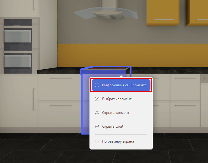 1. Щелкните правой кнопкой мыши или нажмите и удерживайте левую кнопку мыши (на сенсорном экране: долгое нажатие) на элементе модели, чтобы выделить его и открыть контекстное меню.