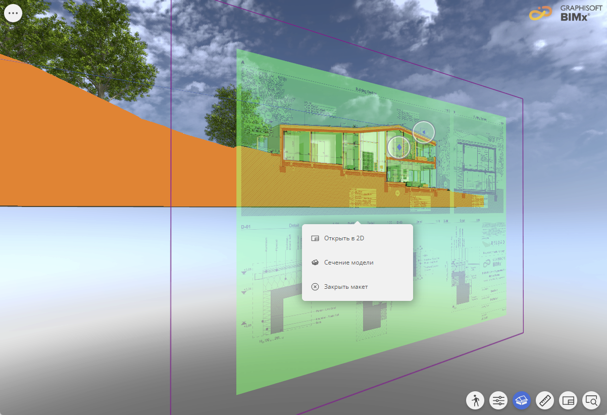 В результате будет открыто горизонтальное или вертикальное сечение 3D-модели с наложенным на него Макетом.