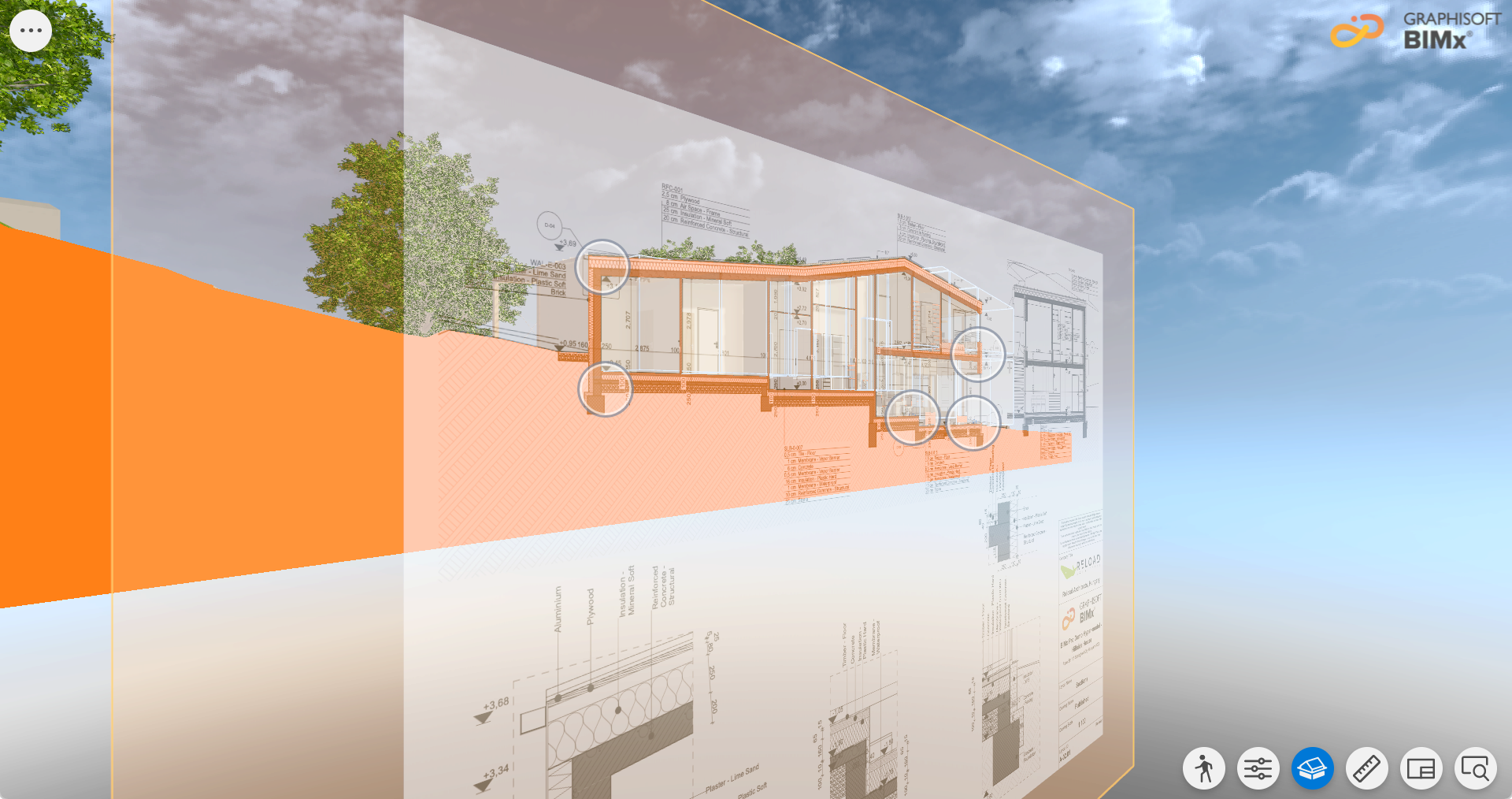 - Отсечь модель, чтобы создать временную плоскость 3D-сечения Прим.: Щелчок на рамке приводит в выбору плоскости сечения (не проекции макета). Щелкните правой кнопкой мыши, чтобы открыть контекстное меню плоскости сечения, содержащее команды Зеркального разворота и Отключения. Подробная информация о плоскости сечения приведена здесь: Секущая плоскость в 3D-модели (клавишная команда: C)