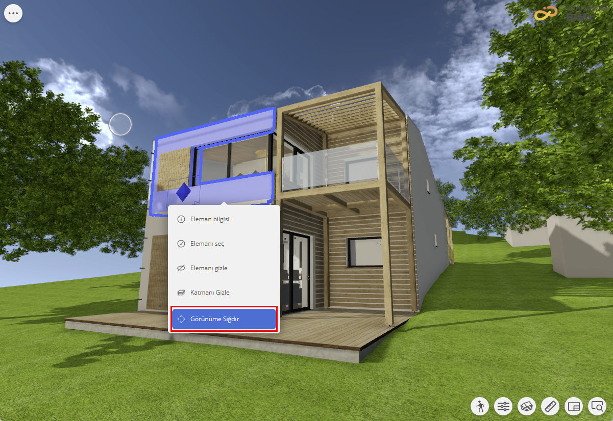 - eleman içerik menüsünden Görünüme Sığdır seçin