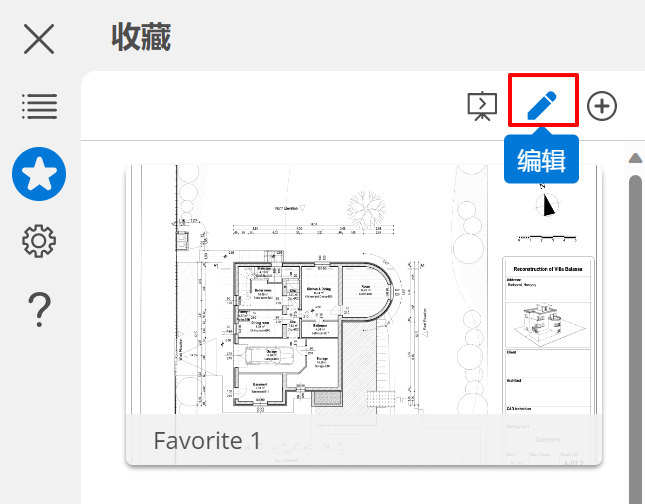 - 在 BIMx 菜单中,单击星形打开 "收藏 "面板。