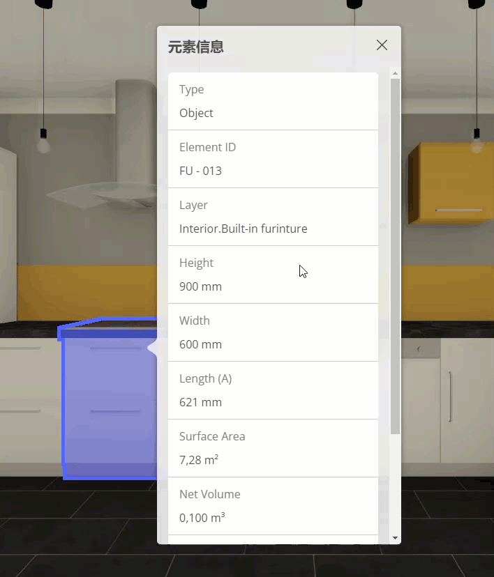 對於Archicad模型:元素訊息內顯示的數據是由Archicad中定義的”訊息集“設定所決定(當儲存BIMx超級模型時,在發佈器集,屬性/訊息集)。