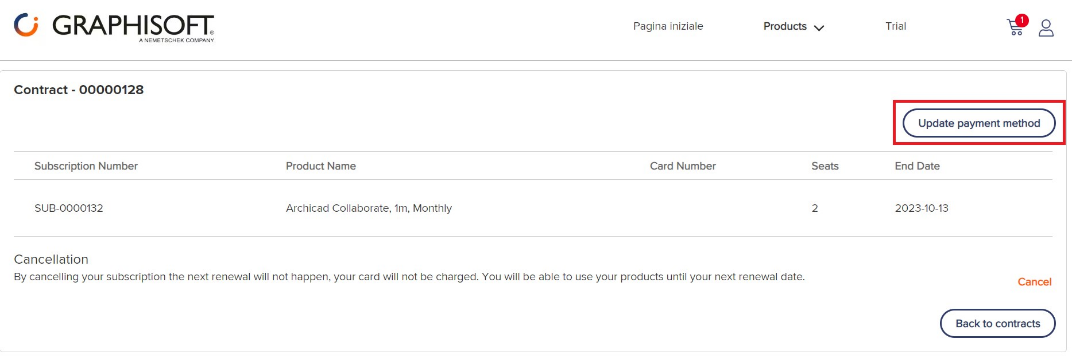 Klicken Sie auf Zahlungsmethode aktualisieren und geben Sie die aktualisierten Daten ein.